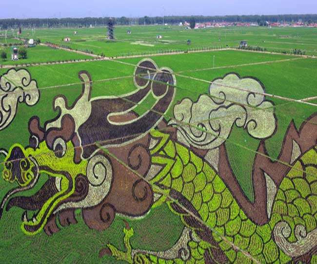 इन तस्वीरों को देखने के बाद आपको यकीन नहीं होगा कि खेत में की गई कलाकारी है लेकिन ये सच है। हर साल चीन के शेनयांग में किसान धान के खेतों में इन रंगीन चित्रों को बनाते हैं। जिन्हें देखने के लिए यहां काफ़ी पर्यटक आते हैं।